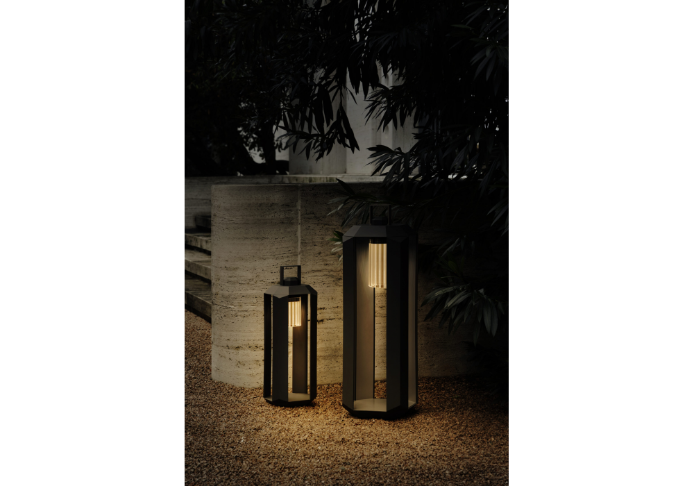 Cube Nomad firmata da Massimiliano Raggi per Contardi è una lampada ricaricabile da esterno con struttura disponibile nelle finiture bronzo scuro e bianco opaco. Accensione automatica tramite rotazione del corpo batteria, facilmente rimovibile per la ricarica via USB-C. Diffusore in plexiglass rigato trasparente, autonomia fino a 10 ore e ricarica in 6–8 ore. Disponibile anche in formato mini.