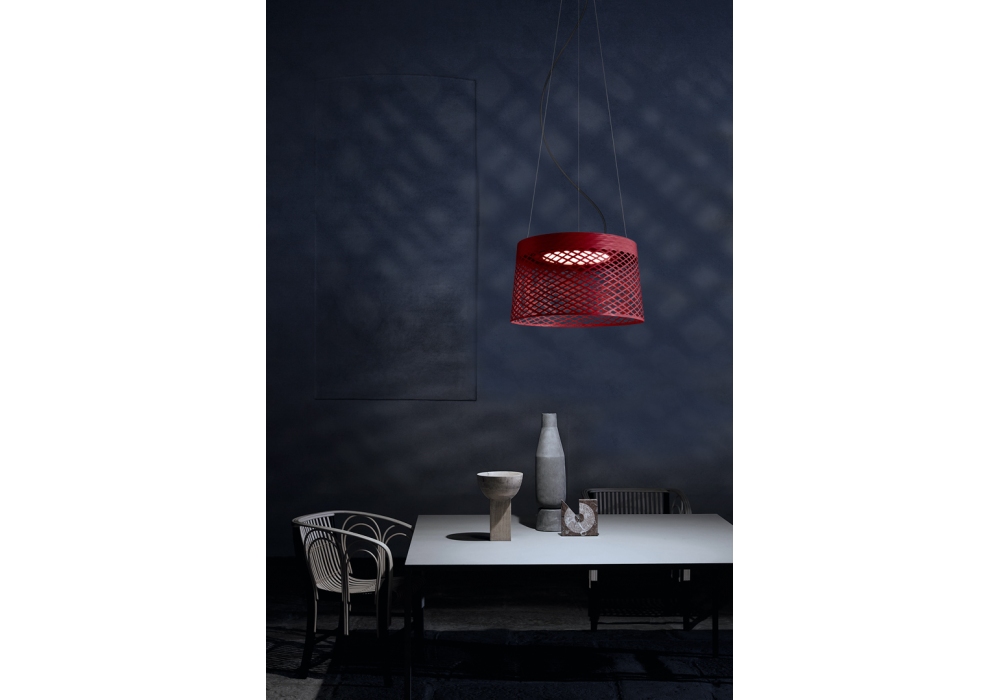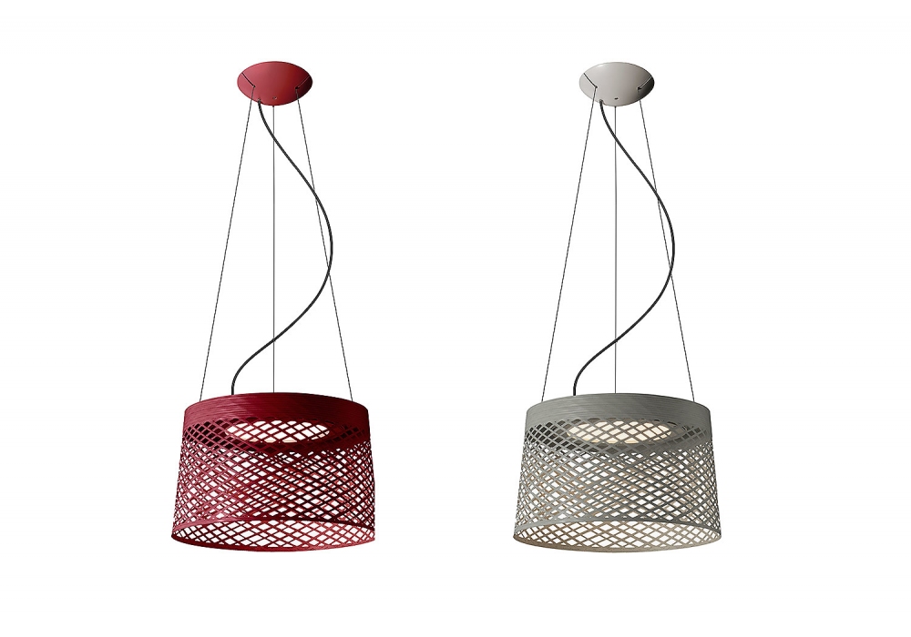 Twiggy Grid firmata da Marc Sadler per Foscarini è una lampada a sospensione per esterni di forma circolare strutturata da alluminio, metallo, PMMA e fibra di vetro verniciati. Il paralume è in materiale composito traforato con un diffusore in policarbonato e scherma una sorgente luminosa di tipo LED. Twiggy Grid è disponibile in differenti finiture.