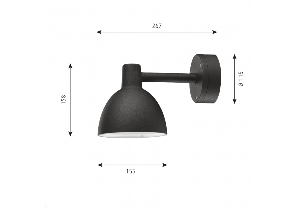 Toldbod 155 firmata e prodotta da Louis Poulsen è una lampada da parete per esterni con struttura portante in alluminio verniciato a polveri. Il diffusore è in acrilico satinato e scherma una sorgente luminosa con innesto E14 di tipo LED o alogeno. Toldbod 155 è disponibile in differenti finiture.