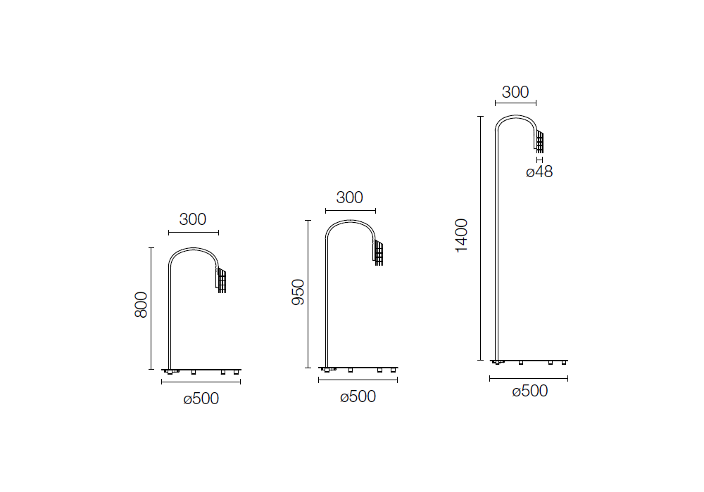 | Dimensioni | Ø 50 x H 80 cm; Ø 50 x H 95 cm; Ø 50 x H 140 cm. |