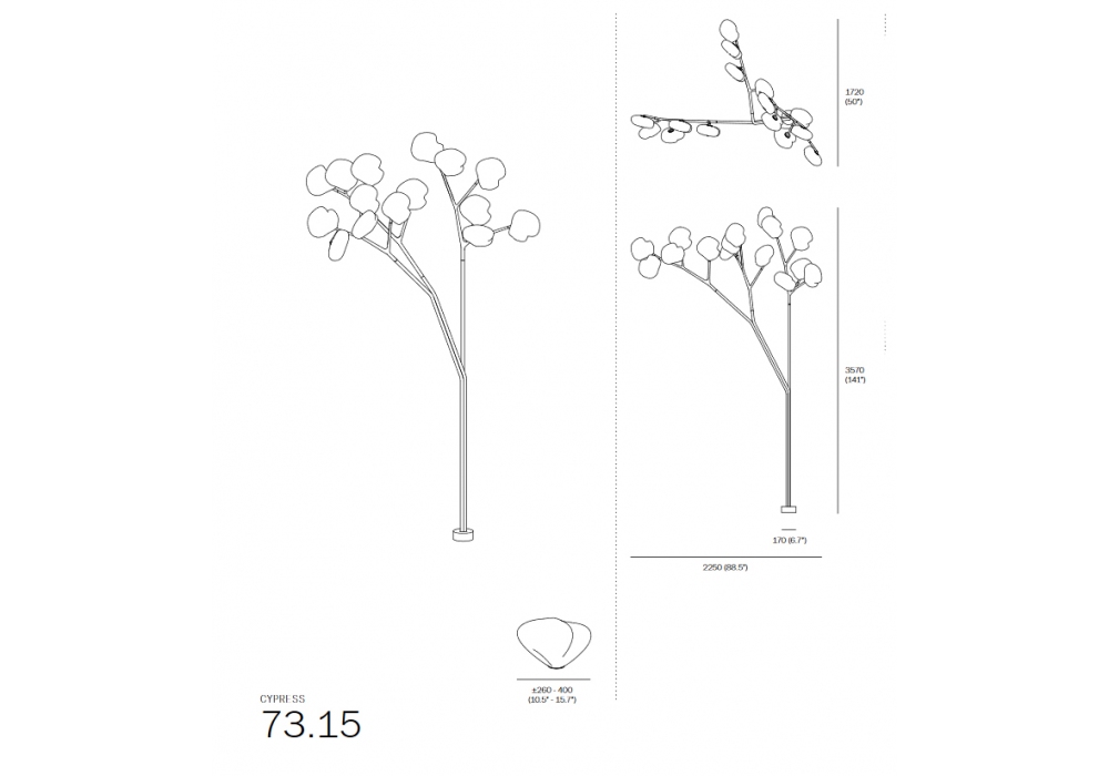73 Trunk firmata da Omer Arbel per Bocci è una lampada da terra per esterni. La struttura è in acciaio inox e simula la forma di un albero con una base cilindrica per un perfetto ancoraggio a terra. Ai rami sono installati i diffusori in vetro soffiato con fonte luminosa a LED. 73 è disponibile in differenti versioni.