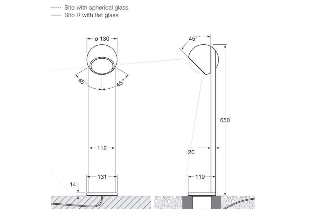 Sito Palo firmato da Occhio è un paletto luminoso a LED per esterni con testa sferica (orientabile fino a 45° a sinistra ea destra) ed emissione luminosa monofacciale. Disponibile in diverse finiture. L'effetto luminoso può essere deciso al momento dell'acquisto.