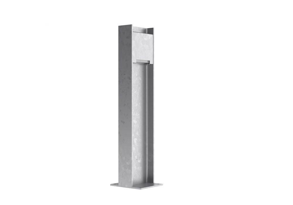I-Ron firmata e prodotta da Flos è una lampada da terra per esterno con struttura di forma quadrangolare in acciaio zincato. Il diffusore è in materiale plastico protetto da lamierino zincato con sorgente luminosa a LED in diverse gradazioni di luce.