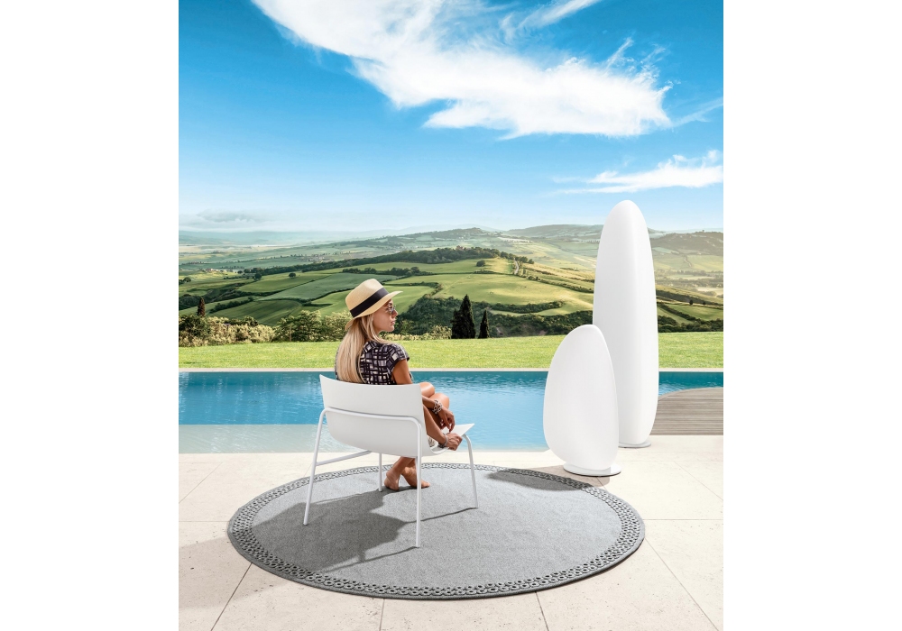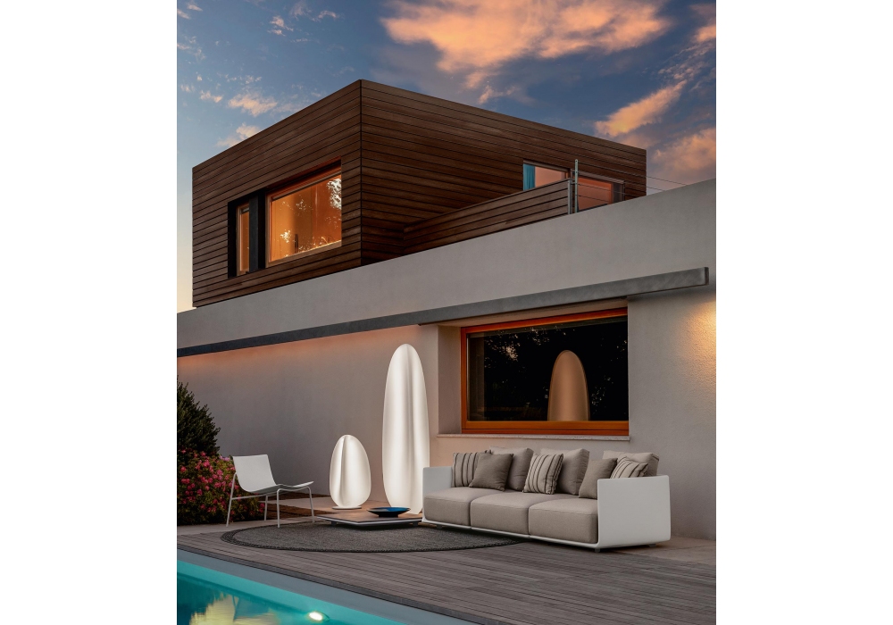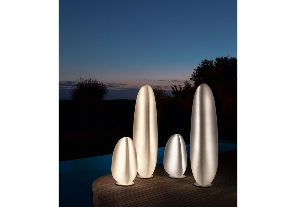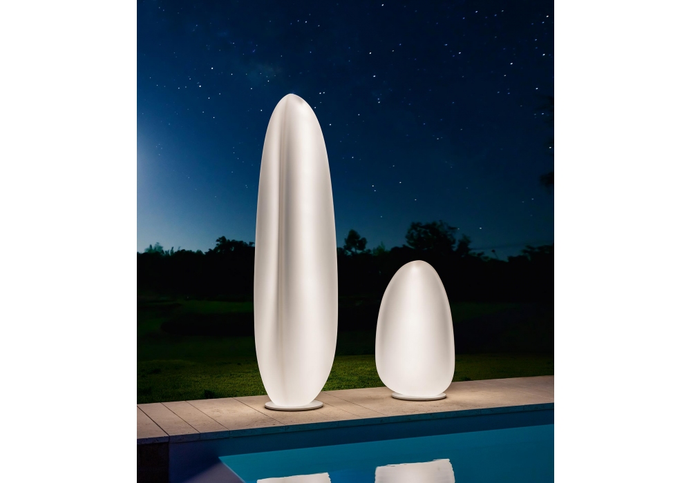 Malè firmata da Ludovica + Roberto Palomba per Talenti per Talenti è una lampada da terra con struttura in acciaio inox e paralume in plastica traslucida. Disponibile in due dimensioni.