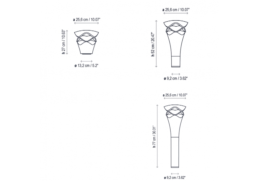| Dimensioni | 25,6 x 13,2 x H 27 cm; 25,6 x 9,2 x H 52 cm; 25,6 x 9,2 x H 77 cm. |
