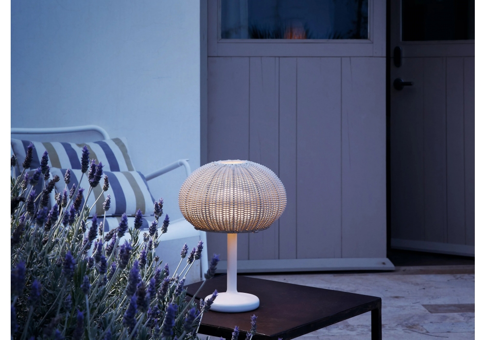 Garota firmata da Alex Fernández Camps e Gonzalo Milà per Bover è una lampada da terra per esterni con struttura portante in acciaio inox tubolare. Il paralume è di forma tondeggiante in fibra sintetica e scherma una sorgente luminosa di tipo LED. Garota è disponibile in differenti finiture e versioni di sorgente luminosa.