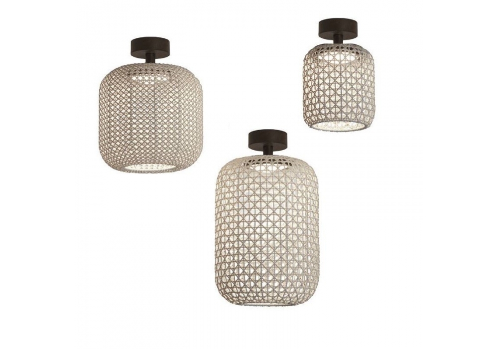 Nans firmata da Joana Bover per Bover è una lampada da soffitto per esterni con suporto e struttura portante in acciaio inox ed alluminio verniciato marrone grafite. Il paralume è di forma tondeggiante in fibra sintetica con diffusore in policarbonato e scherma una sorgente luminosa di tipo LED con sistema dimmer Triac. Nans è disponibile in differenti finiture e modelli.