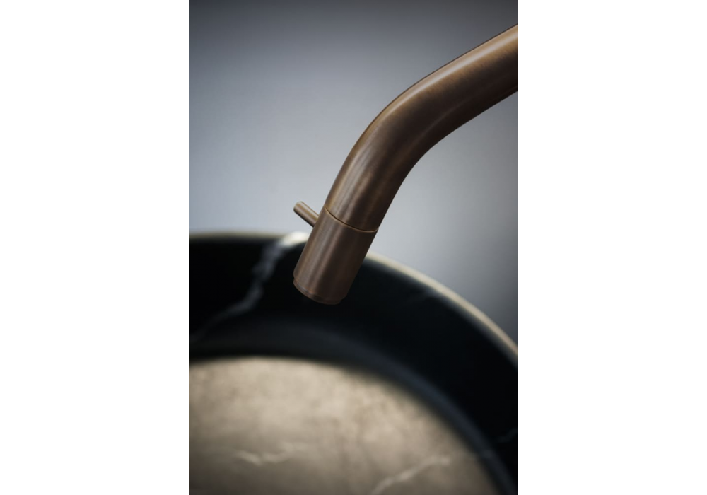 Memory firmata da Benedini Associati per Agape è una bocca di erogazione a pavimento in ottone con regolatore di flusso, regolazione di temperatura non gestita.