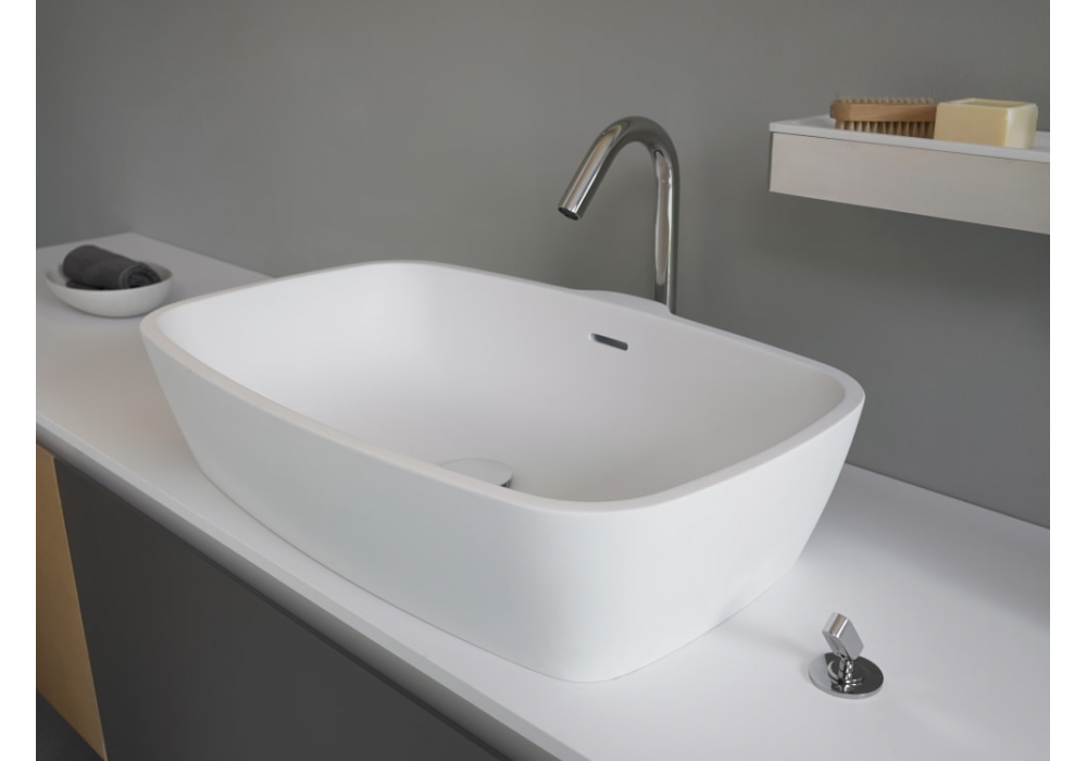 Square firmato da Benedini Associati per Agape è un rubinetto monoforo per il piano realizzato in acciaio inox AISI316L lucido o opaco. Si compone di una bocca di erogazione e dal miscelatore joystick. Flessibili di alimentazione inclusi.