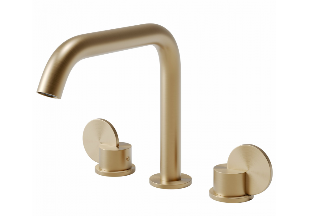 Limón firmato da Patricia Urquiola per Agape è un rubinetto a tre fori realizzato in ottone in differenti fiiniture. É dotato di doppio comando e flessibili di alimentazione per lavabo.