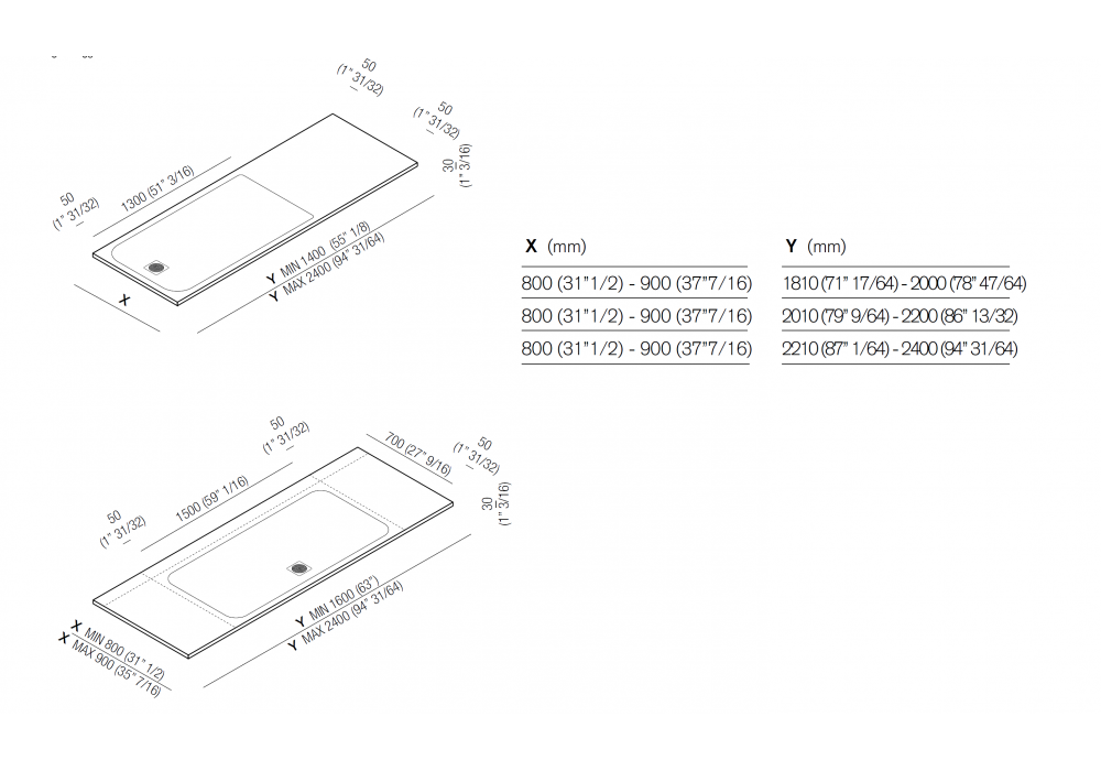 * Su richiesta è diponibile con misure personalizzate.