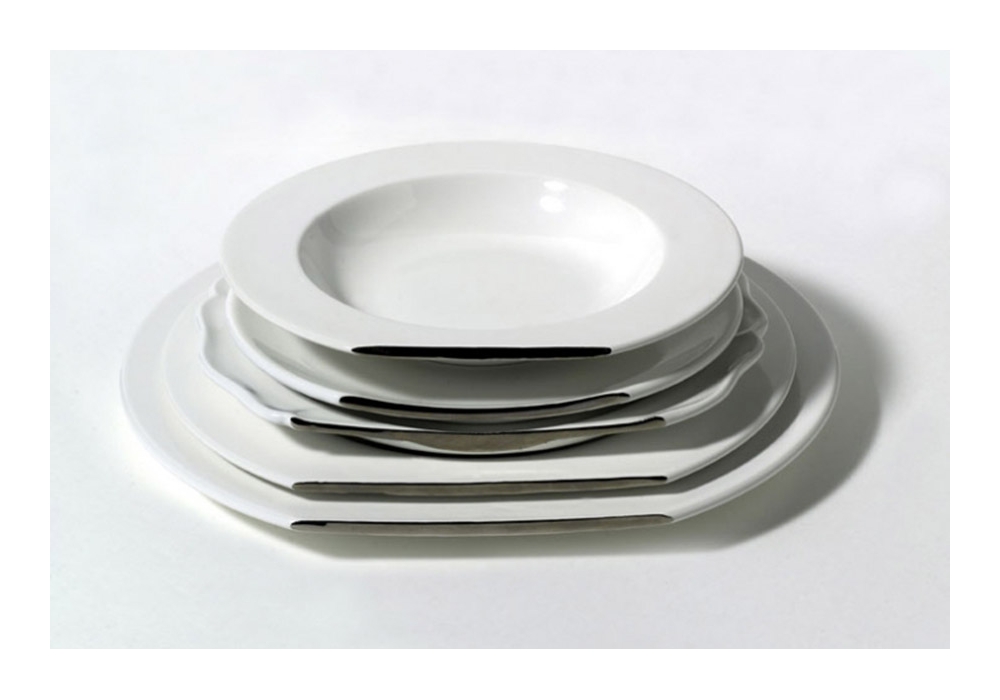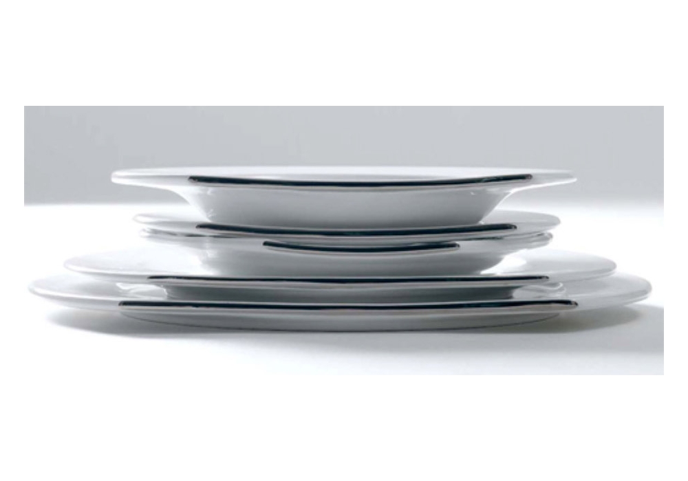 Slices of Design firmata da Sam Baron per Bosa è una collezione di piatti in ceramica smaltata, con una forma tradizionale e un tocco di originalità rappresentato dal taglio laterale in metalli preziosi. La collezione comprende: un piatto zuppa, un piatto piano, un sottopiatto, un piatto frutta, un piatto dolce, un piatto da portata e una insalatiera. Disponibile in diverse finiture.