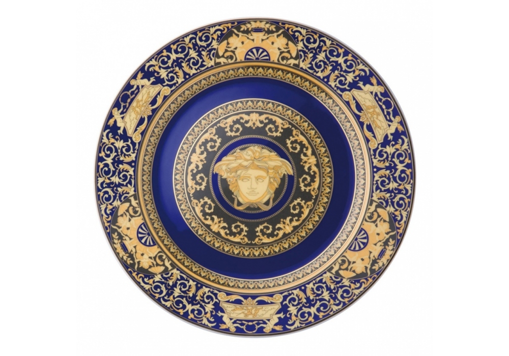 Medusa Blue firmato da Versace in collaborazione con Rosenthal è un piatto da parete in porcellana.