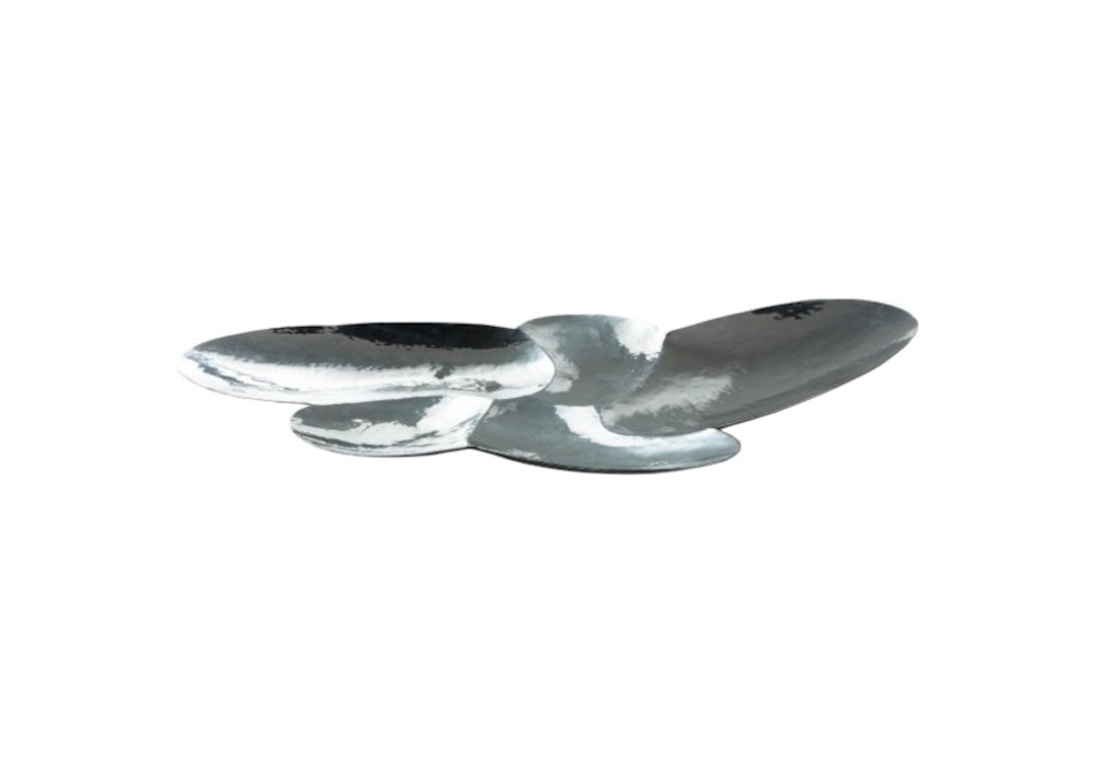 Cloud firmato da Tom Dixon è un piatto realizzato a mano in allumino lucidato altamente riflettente.