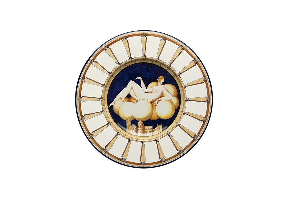 Le Mie Donne Gio Ponti firmato da Gio Ponti per Ginori 1735 è un piatto decorato realizzato in maiolica dal design riuscito capace di creare un piacevole equilibrio tra il rigoroso classicismo delle architetture e il guizzante Déco delle figure. Disponibile in 4 finiture.