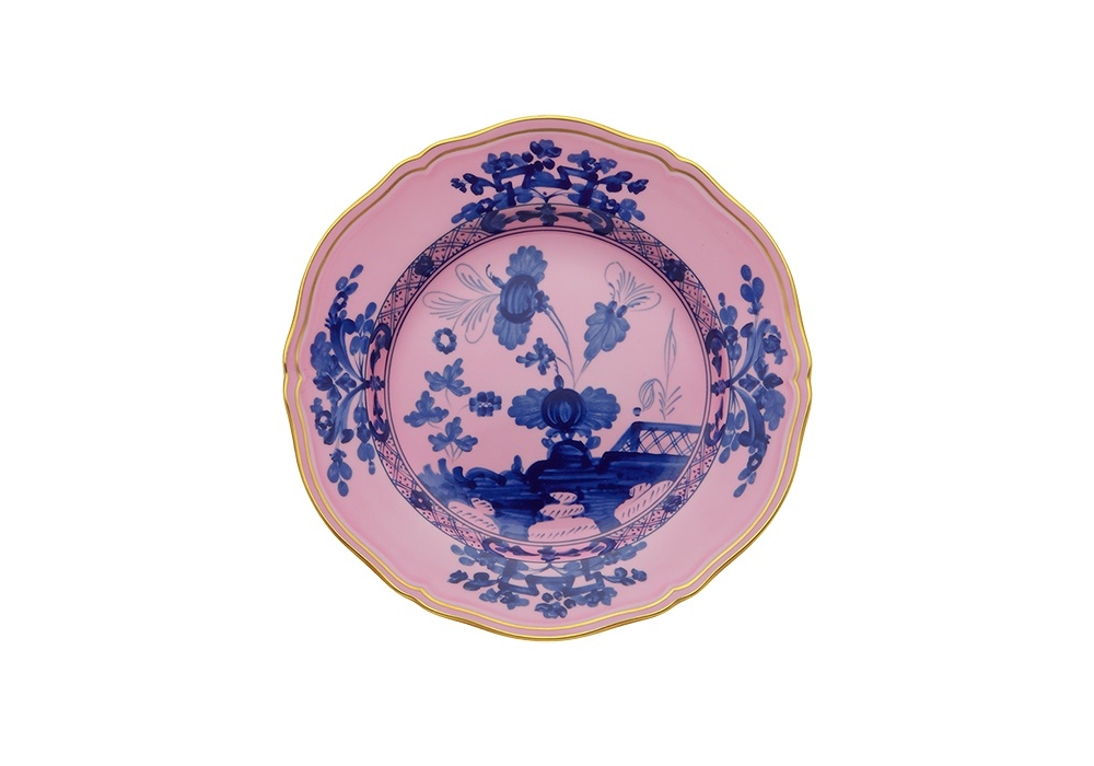 Piatto Dessert Oriente Italiano Azalea firmato da Ginori 1735 è un piatto piano decorato da dessert.