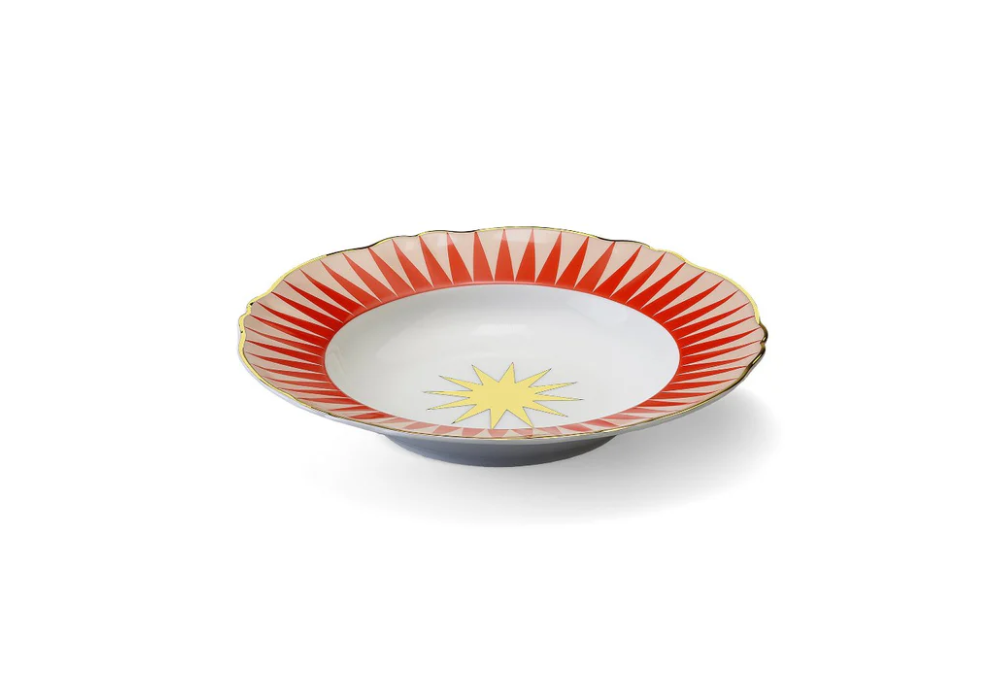 Baleno firmato da design LaTigre per Bitossi Home è un piatto fondo in porcellana con decorazioni e dettagli in oro. Adatto alla lavastoviglie e a un massimo di 250 lavaggi. Non adatto al microonde.