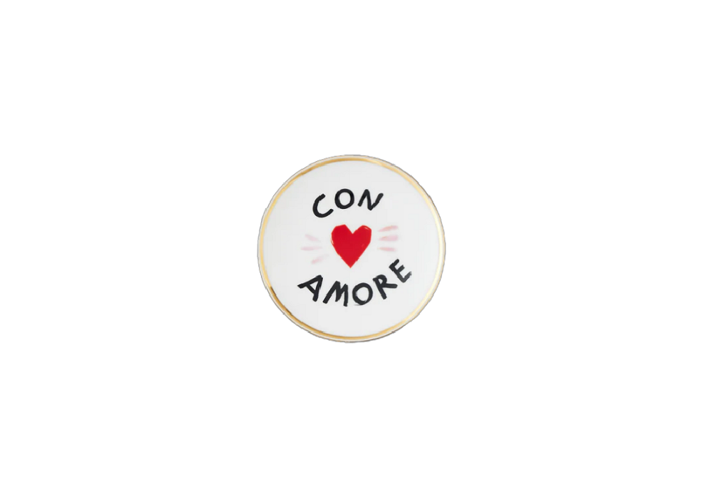 Con Amore firmato da Bitossi Home è un piattino realizzato in porcellana con un decalco bordo oro. Adatto per lavastoviglie Max 250 lavaggi. Non adatto per microonde.