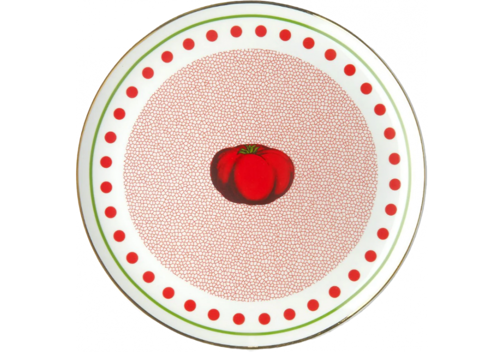Pomodoro firmato da design Sam Baron per Bitossi Home è un piatto portata in porcellana con decorazioni e dettagli in oro. Adatto alla lavastoviglie e a un massimo di 250 lavaggi. Non adatto al microonde.