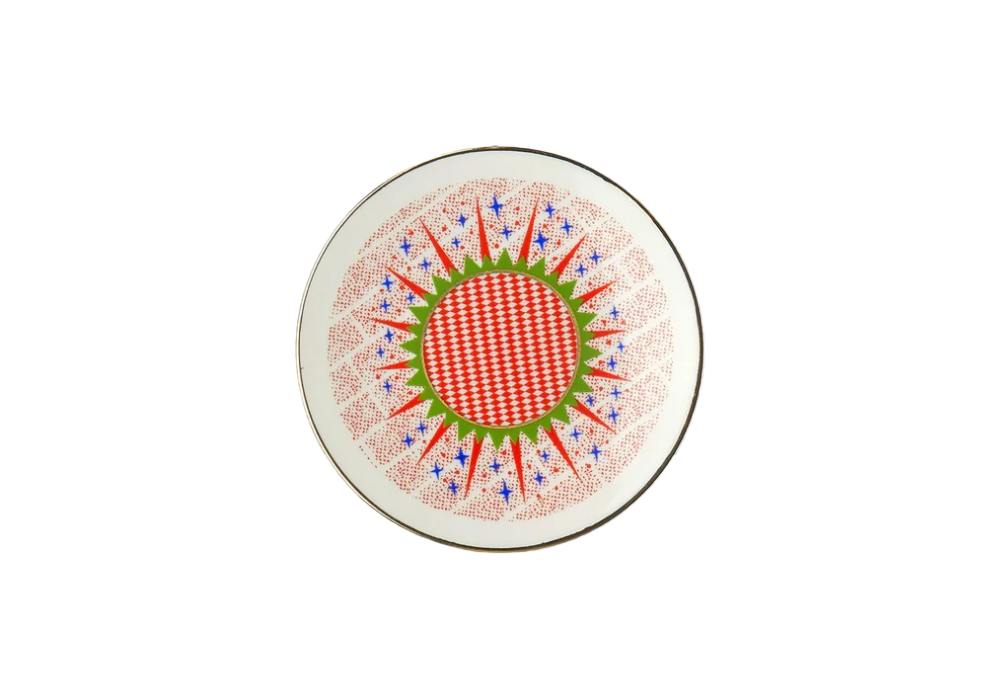 Stelline firmato da design Sam Baron per Bitossi Home è un piattino in porcellana con decorazioni e dettagli in oro. Adatto alla lavastoviglie e a un massimo di 250 lavaggi. Non adatto al microonde.