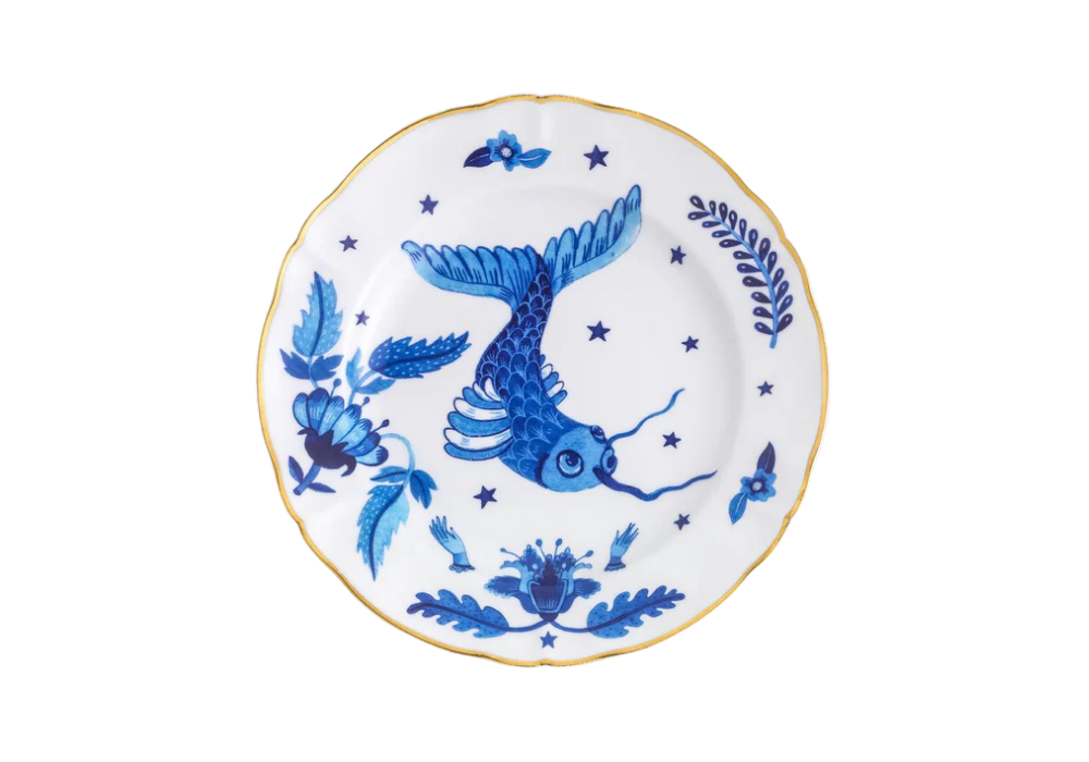 Marino firmato da design Aitch.Ro per Bitossi Home è un piatto frutta in porcellana con decorazioni e dettagli in oro. Adatto alla lavastoviglie e a un massimo di 250 lavaggi. Non adatto al microonde.