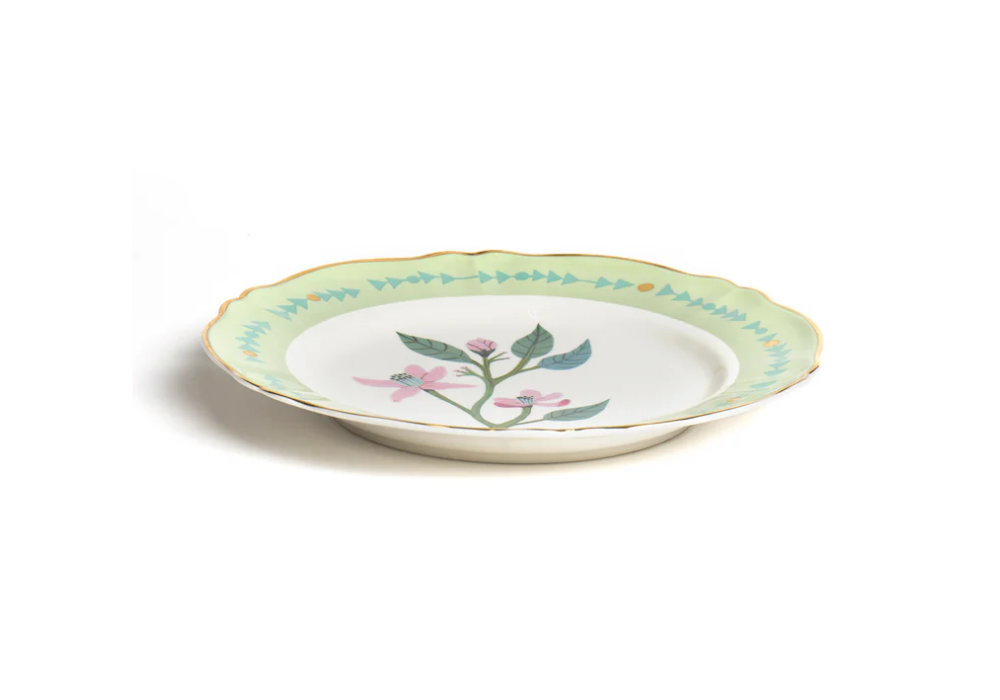 Clematide firmato da Monika Forsberg per Bitossi Home è un piatto piano in porcellana con decorazioni e dettagli in oro. Adatto alla lavastoviglie e a un massimo di 250 lavaggi. Non adatto al microonde.