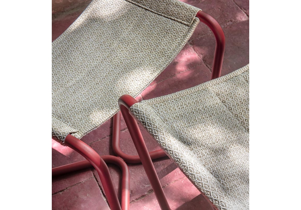 Sling firmato da Studio Pepe per Ethimo è un poggiapiedi con struttura tubolare in acciaio inox verniciato e rivestita in tessuto poliolefine elitis o acrilico. Sling è disponibile in differenti finiture di metallo e tessuto.