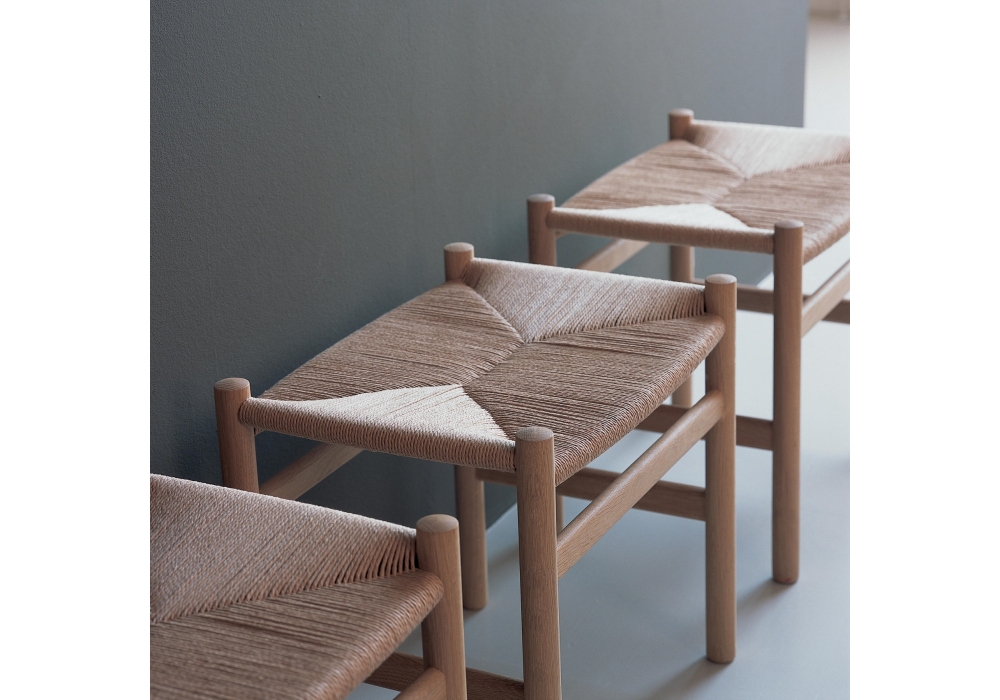 CH53 firmato da Hans J. Wegner per Carl Hansen & Søn è un poggiapiedi con struttura in legno massello di faggio o rovere. Sedile in paglia naturale o nero. Disponibile in due dimensioni.