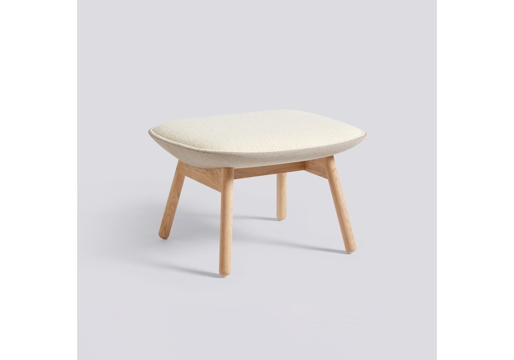 Uchiwa Ottoman firmato da Doshi Levien per Hay è un poggiapiedi realizzato con scocca in polipropilene rinforzato con poliuretano espanso stampato, base in massello di rovere laccato all' acqua e rivestimento interno ed esterno in tessuto o in pelle. Disponibile in differenti rivestimenti.