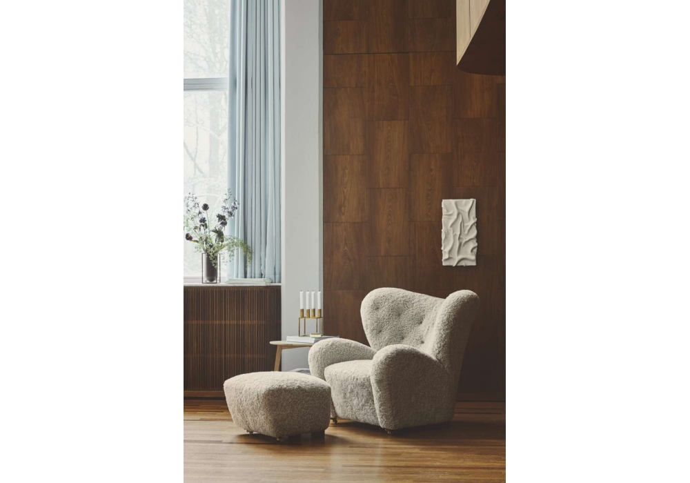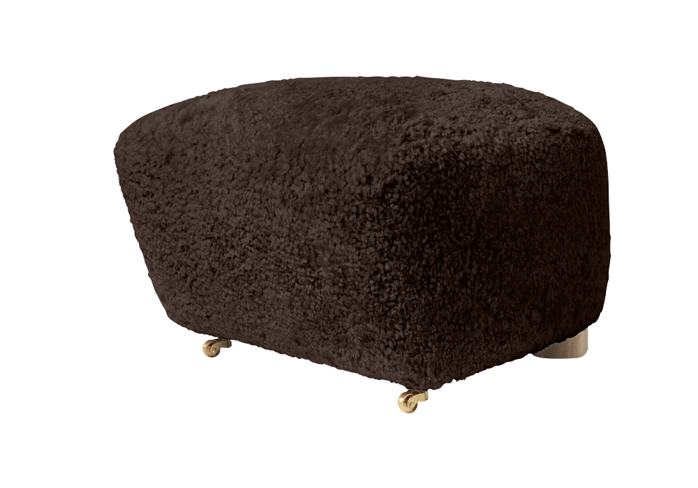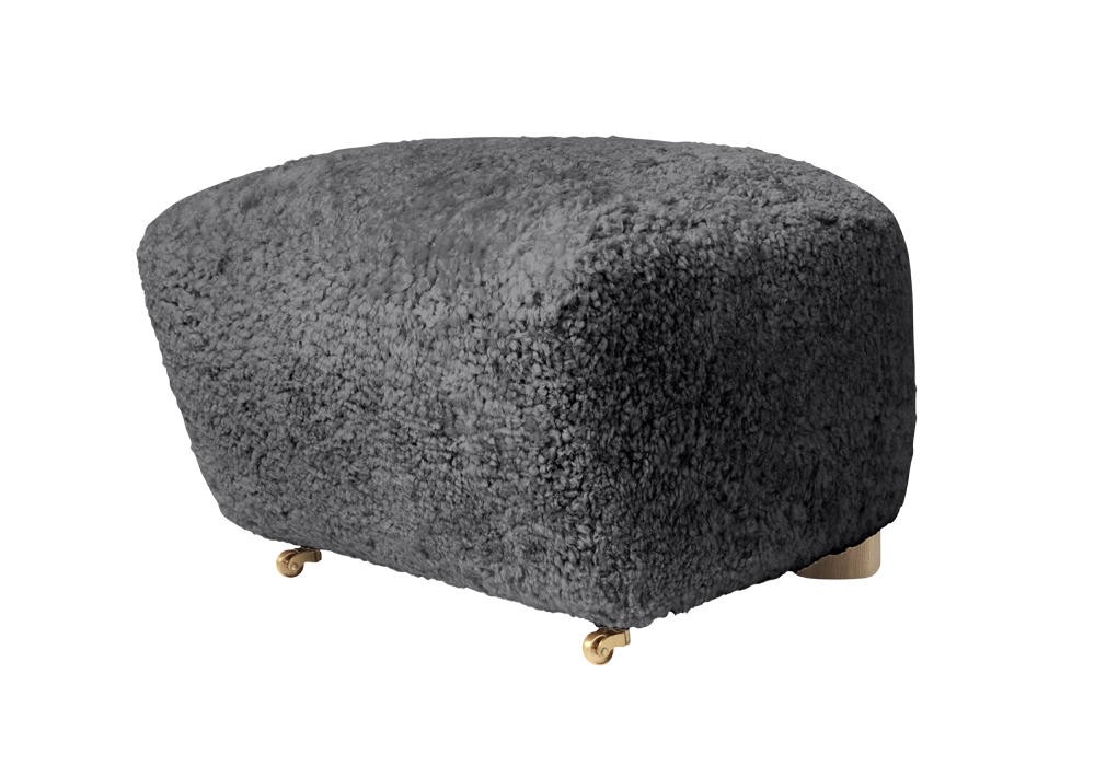 The Tired Man firmato da Flemming Lassen per Audo Copenhagen è un ottomano realizzato in pelle o tessuto, gambe in legno di rovere e ruote in ottone massiccio. Disponibile in diversi rivestimenti.