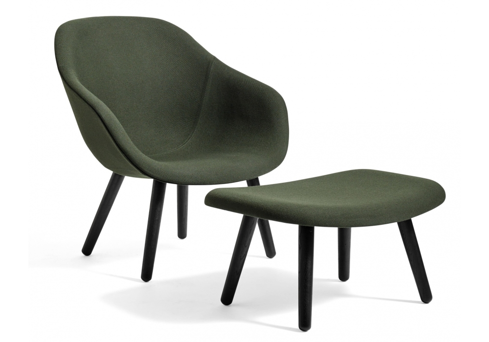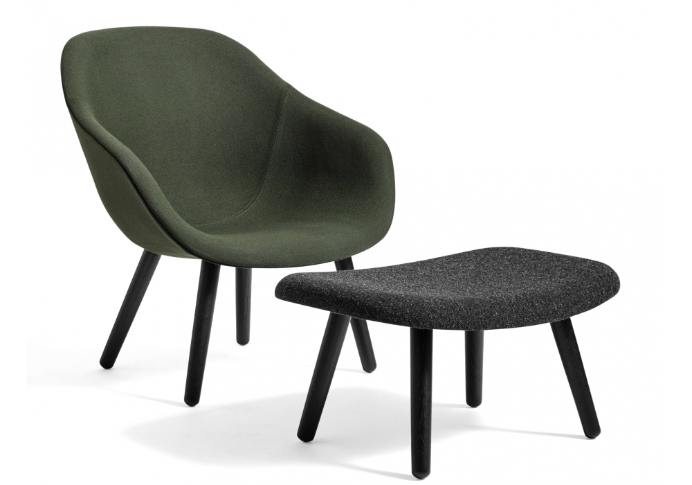 About a Lounge AAL 03 firmato da He Welliung & Hay per Hay è un poggiapiedi con rivestimento in pelle o tessuto con schiuma poliuretanica sagomata tagliata e 4 gambe in legno massello di rovere. Disponibile in differenti rivestimenti.