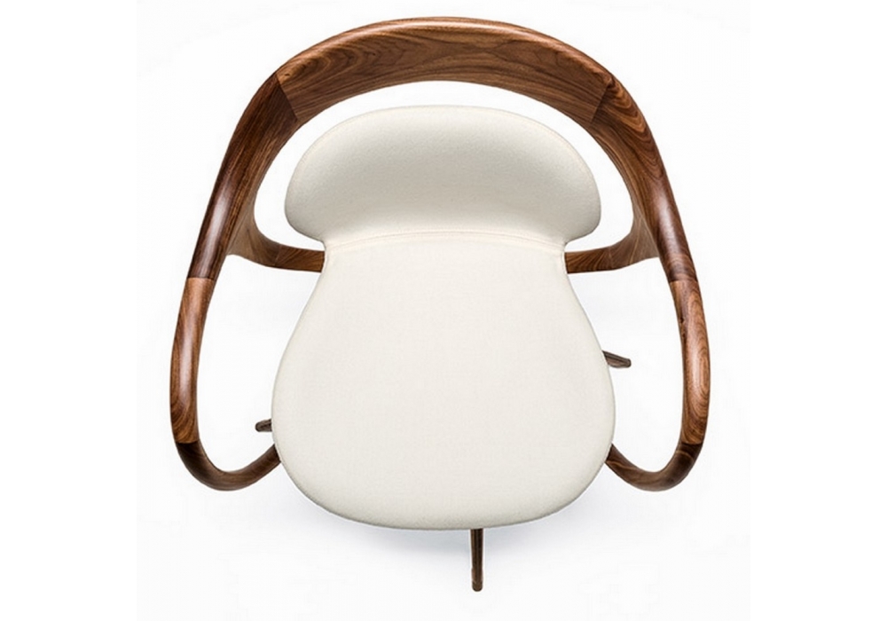 Norah firmata da M2Atelier per Giorgetti è una poltroncina con sedile girevole in massiccio di noce canaletto, disponibile in diverse finiture. La seduta è imbottita in poliuretano, con rivestimento non sfoderabile in tessuto o pelle.