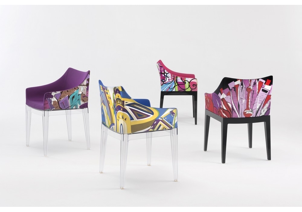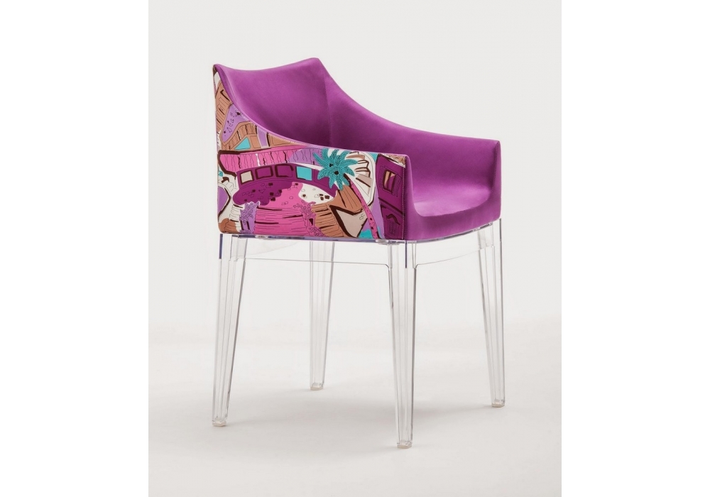 Madame - World of Emilio Pucci firmata da Philippe Starck per Kartell è una poltroncina realizzata con struttura in policarbonato trasparente o colorato in massa e seduta in poliuretano ricoperto in tessuto.