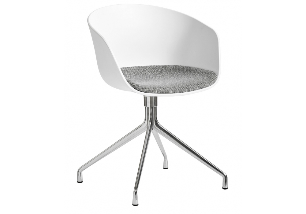About a Chair AAC 20 firmata da Hee Welling & HAY per Hay è una poltroncina con cuscino con scocca senza bracciolo in polipropilene stampato ad iniezione in tinta unita, base girevole a 4 razze in fusione di alluminio lucido o verniciato a polvere e cuscino di seduta fisso. Disponibile iun diverse finiture.
