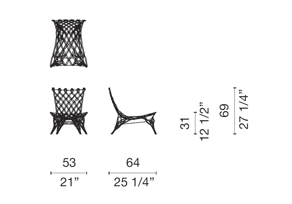 Knotted Chair firmata da Marcel Wanders per Cappellini è una poltroncina con struttura costituita da una corda intrecciata.