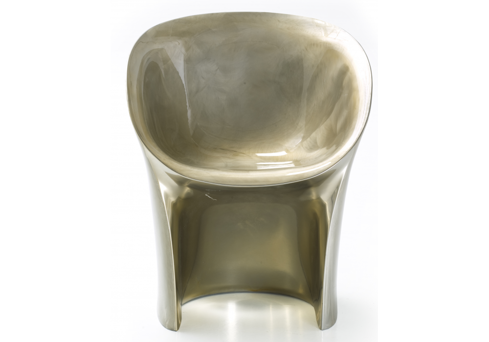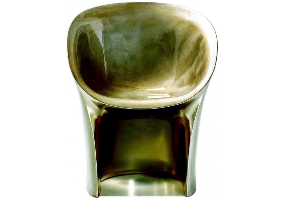 Moon firmato da Tokujin Yoshioka per Moroso è una poltroncina in polietilene laccato metallizzato.