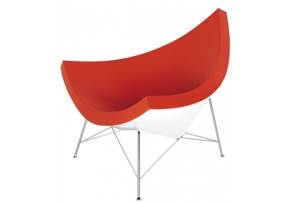 Vitra Coconut chair sedia: Nelson paragonò la Coconut Chair a una noce di cocco divisa in otto spicchi, invertendo la colazione: la scocca esterna della seduta in materiale sintetico è bianca, mentre l'imbottitura interna monopezzo è disponibile in diversi colori. Questa poltrona invitante e comoda dà all'utilizzatore la libertà di scegliere tra molte differenti posizioni. Scocca: bianca, in materiale sintetico rinforzato in fibra di vetro. Imbottitura (monopezzo): schiuma poliuretanico. Basamento: acciaio tubolare cromato lucido. Pattini: tutti i piedi sono dotati di pattini per moquette o, a scelta, anche di inserti in feltro per pavimenti duri.