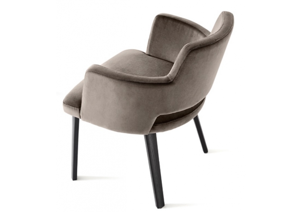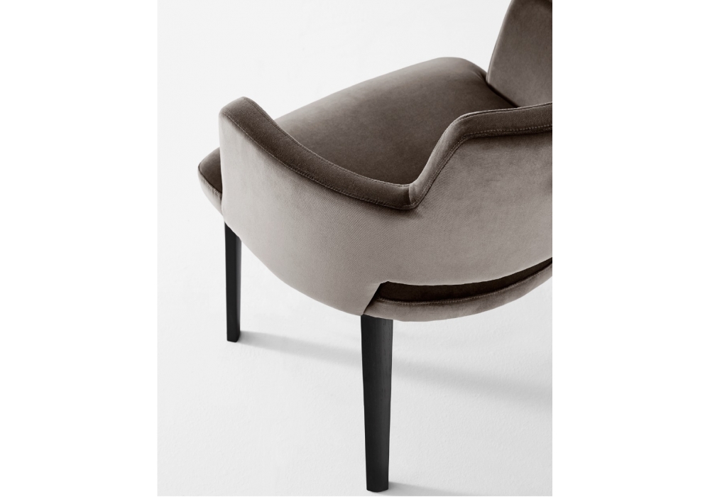 Thea Queen firmata da Pinuccio Borgonovo per Gallotti&Radice è una poltroncina con seduta e schienale rivestiti in tessuto o pelle nei colori del campionario. Schienale in multistrato curvato, seduta in multistrato imbottito in poliuretano espanso a densità differenziate e fibra poliestere. Gambe in rovere tinto nero poro aperto.
