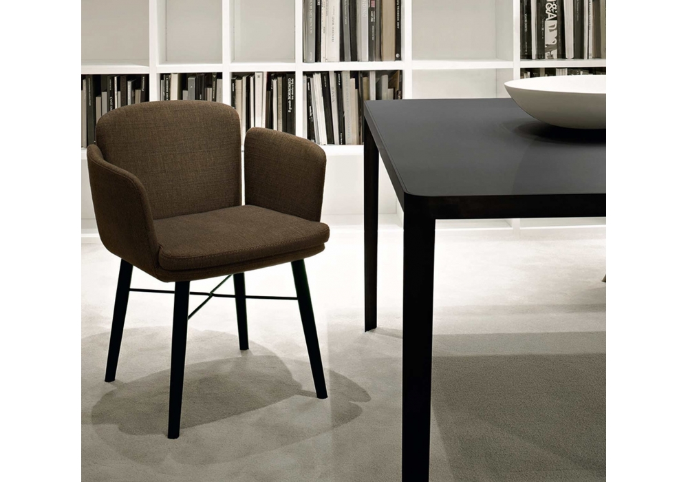 Tabby è la poltroncina firmata da Gordon Guillaumier per Lema. Gambe in legno e rivestimento disponibile in tessuto, ecopelle o pelle.