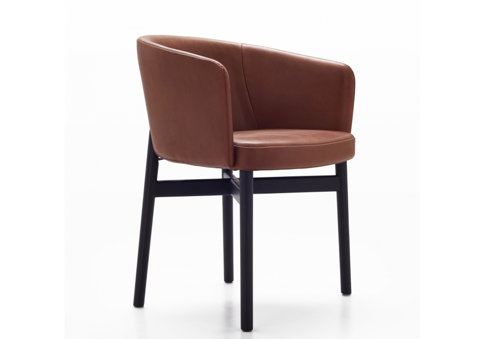 Krusin firmata da Marc Krusin for Knoll è una poltroncina con struttura in legno massello di frassino con incastri e tenoni. Imbottitura in poliuretano schiumato su struttura metallica con cinghie e rivestimento in tessuto o pelle.