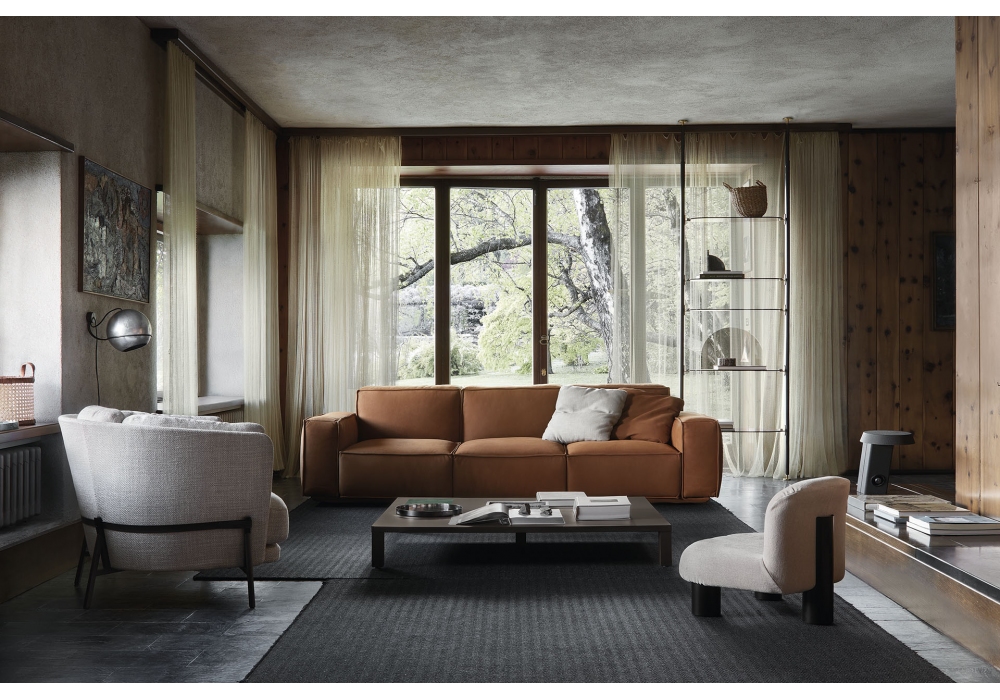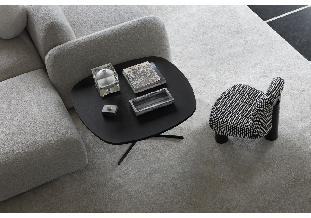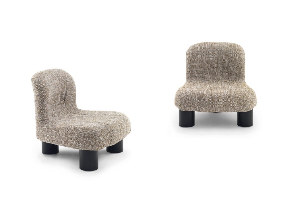 Botolo firmata da Cini Boeri per Arflex è una poltrona bassa con basamento in metallo laccato e rivestimento in tessuto o pelliccia.