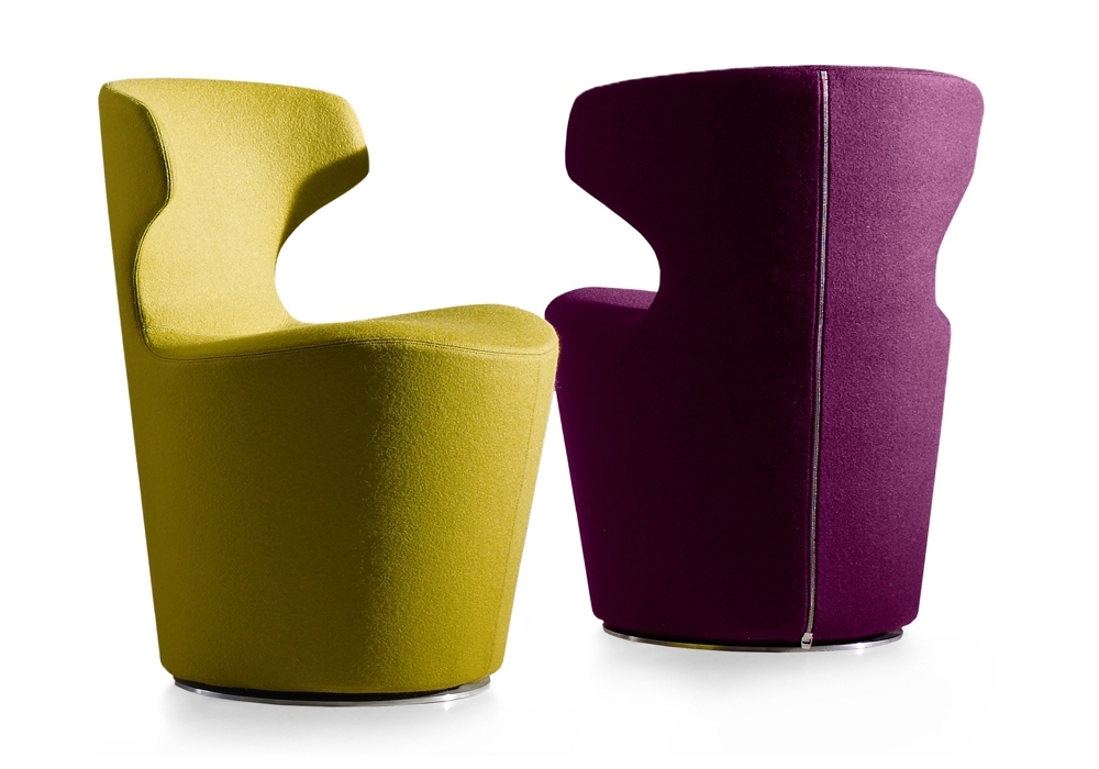 Mini Papilio firmata da Naoto Fukasawa per B&B Italia è una poltroncina con base girevole, con o senza meccanismo di ritorno, in laminato d'acciaio ed estruso di alluminio. Struttura interna realizzata in tubolari e profilati d'acciaio con imbottitura in schiuma di poliuretano flessibile a freddo Bayfit®, fodera in fibra di poliestere. Rivestimento in differenti tessuti o pelli.