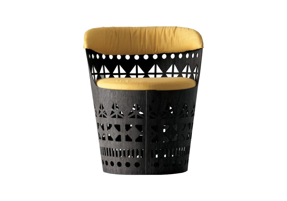 Dogon S firmata da Ferruccio Laviani per Emmemobili è una poltroncina che interpreta memorie etniche in chiave moderna. Realizzata in un unico foglio flessibile di multistrato traforato disponibile in diverse finiture. Fornita di cuscini per la seduta e per lo schienale.
