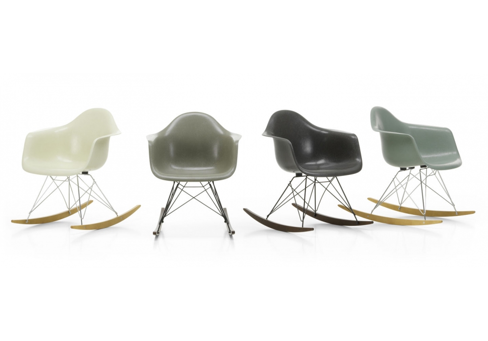 Eames Fiberglass armchair RAR disegnata da Charles e Ray Eames per Vitra è una sedia a dondolo della collezione RAR con scocca realizzata in poliestere rinforzato in fibra di vetro disponibile in diverse finiture. Base con fili di acciaio con montanti incrociati in diverse finiture e pattini in acero massello in due finiture.