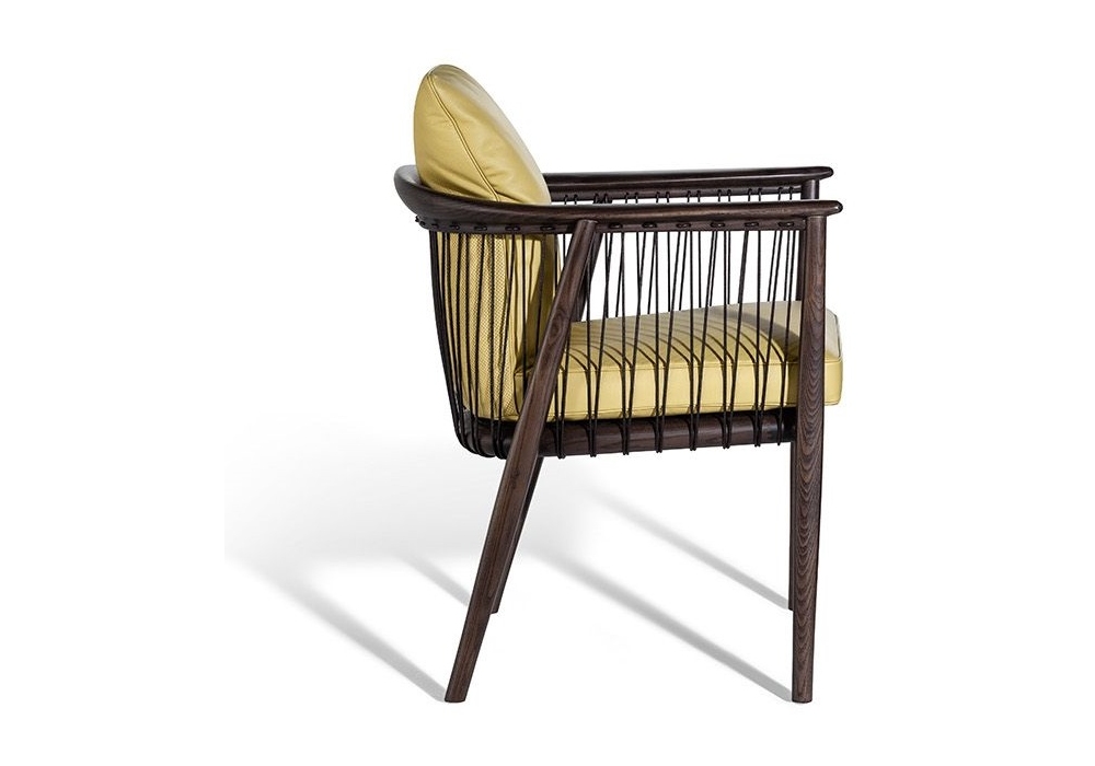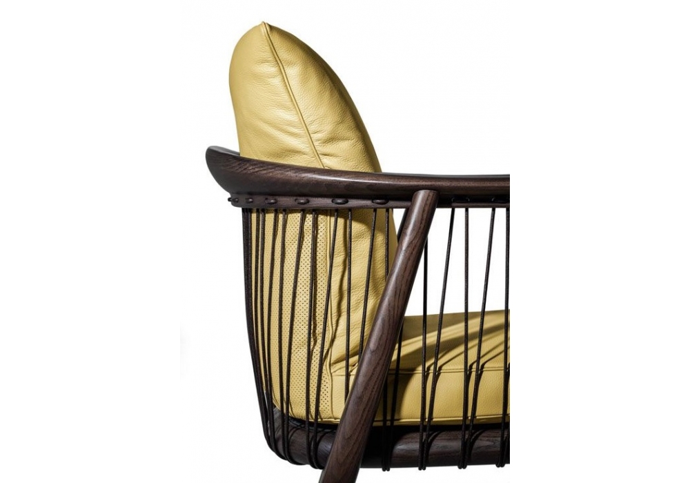 Viola firmata da AB Concept per Poltrona Frau è una poltroncina con struttura in massello di frassino tinto Moka o Wengé, impreziosita da una trama realizzata con concordoncini in cuoio colore testa di moro o naturale. Cuscini seduta e schienale rivestiti in tessuto o pelle.