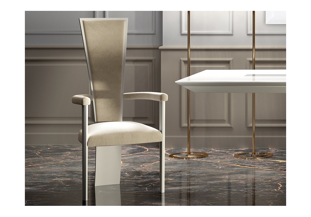 Upholstered chair disegnata da Vismara Design è una poltroncina imbottita con schienale alto e braccioli, gambe e schienale in legno laccato colori a scelta.