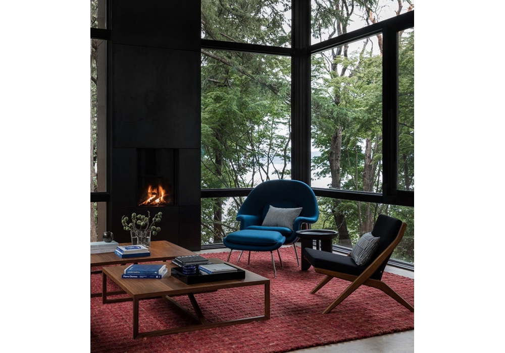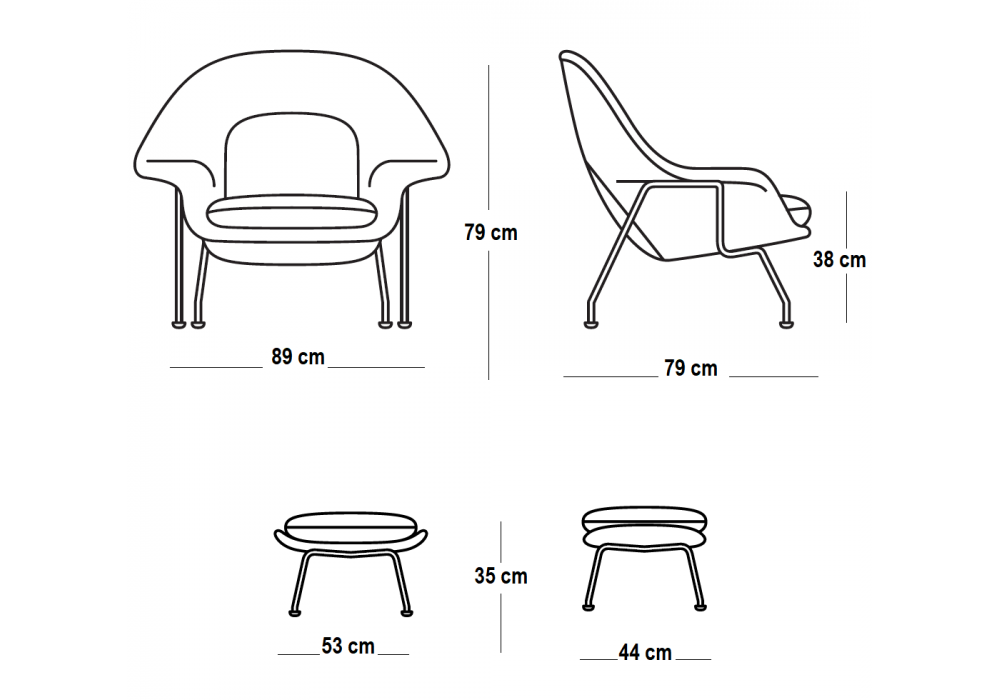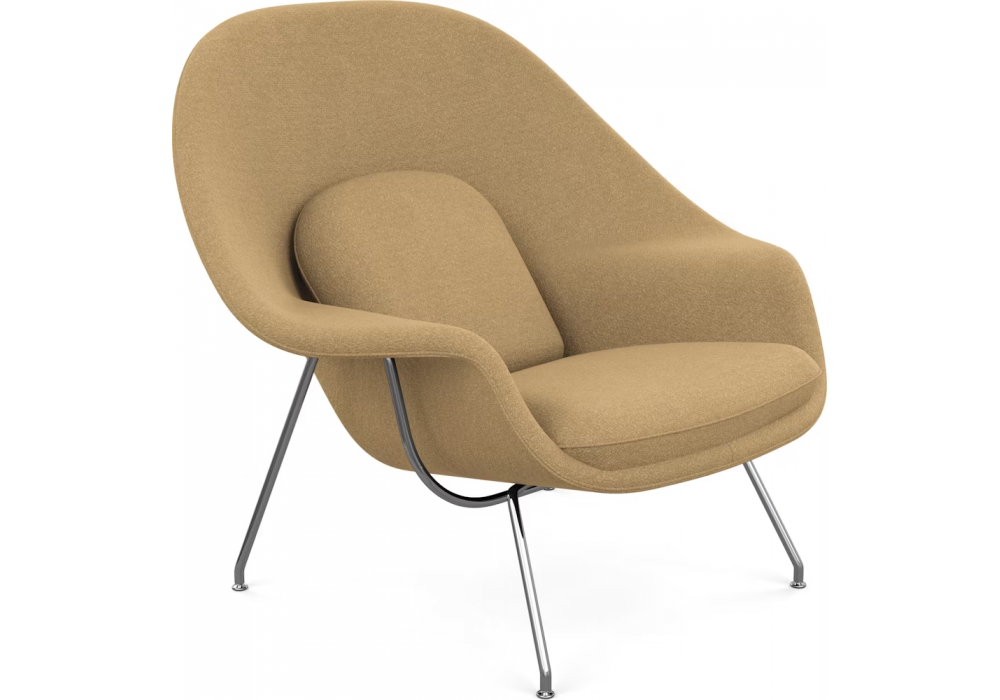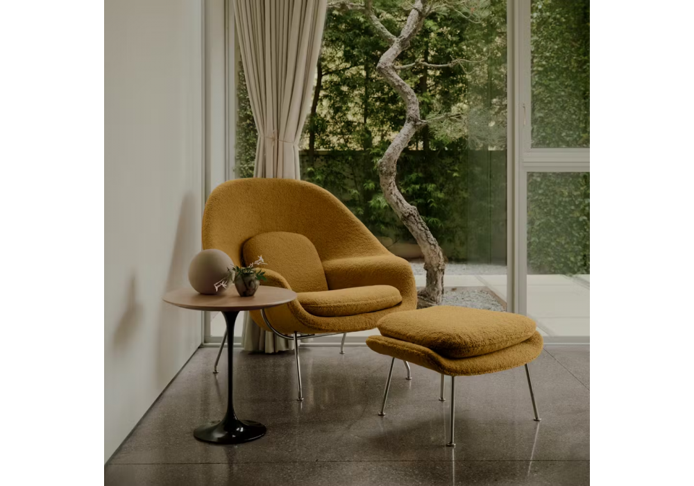 Womb firmata da Eero Saarinen per Knoll è una poltroncina con base in acciaio cromato o verniciata nera. Scocca in fiberglass schiumato e rivestita in tessuto in varie finiture. Disponibile nella versione con o senza pouf.