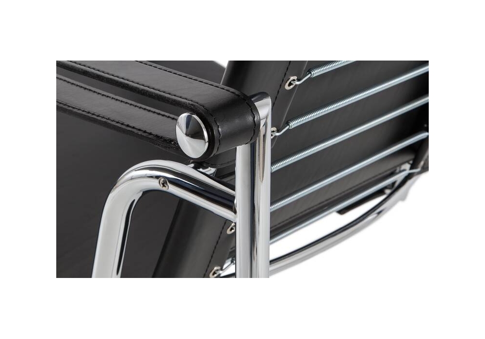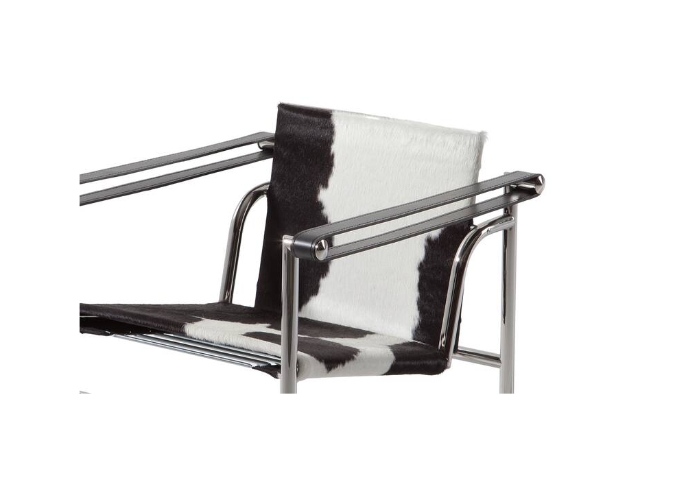 1 Fauteuil Dossier Basculant firmata da Le Corbusier, Pierre Jeanneret, Charlotte Perriand per Cassina è una poltroncina realizzata con struttura verniciata nero o cromata. Sedile e schienale in cuoio con braccioli coordinati. Nelle versioni con rivestimento in pelle con pelo i braccioli sono in cuoio nero. Disponibile in diverse finiture.