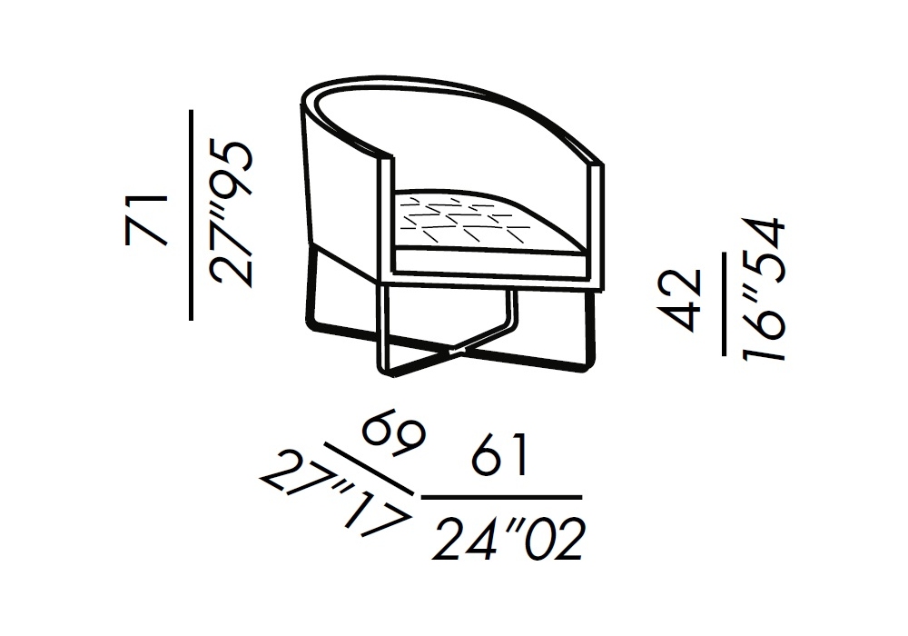 Lolyta firmata da Andrea Parisio per Meridiani è una poltroncina con basamento in metallo verniciato opaco black. Cuscino seduta in poliuretano con finitura trapuntata e scocca imbottita con esterno liscio. Imbottitura in poliuretano stampato con inserto in metallo.