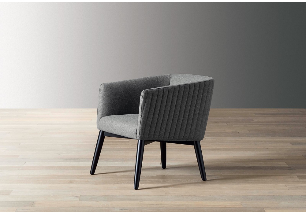 Lolyta Due Stripe firmata da Andrea Parisio per Meridiani è una poltroncina con gambe in faggio laccato opaco black. Cuscino seduta in poliuretano con finitura trapuntata e scocca imbottita con esterno trapuntato a righe. Imbottitura in poliuretano stampato con inserto in metallo.